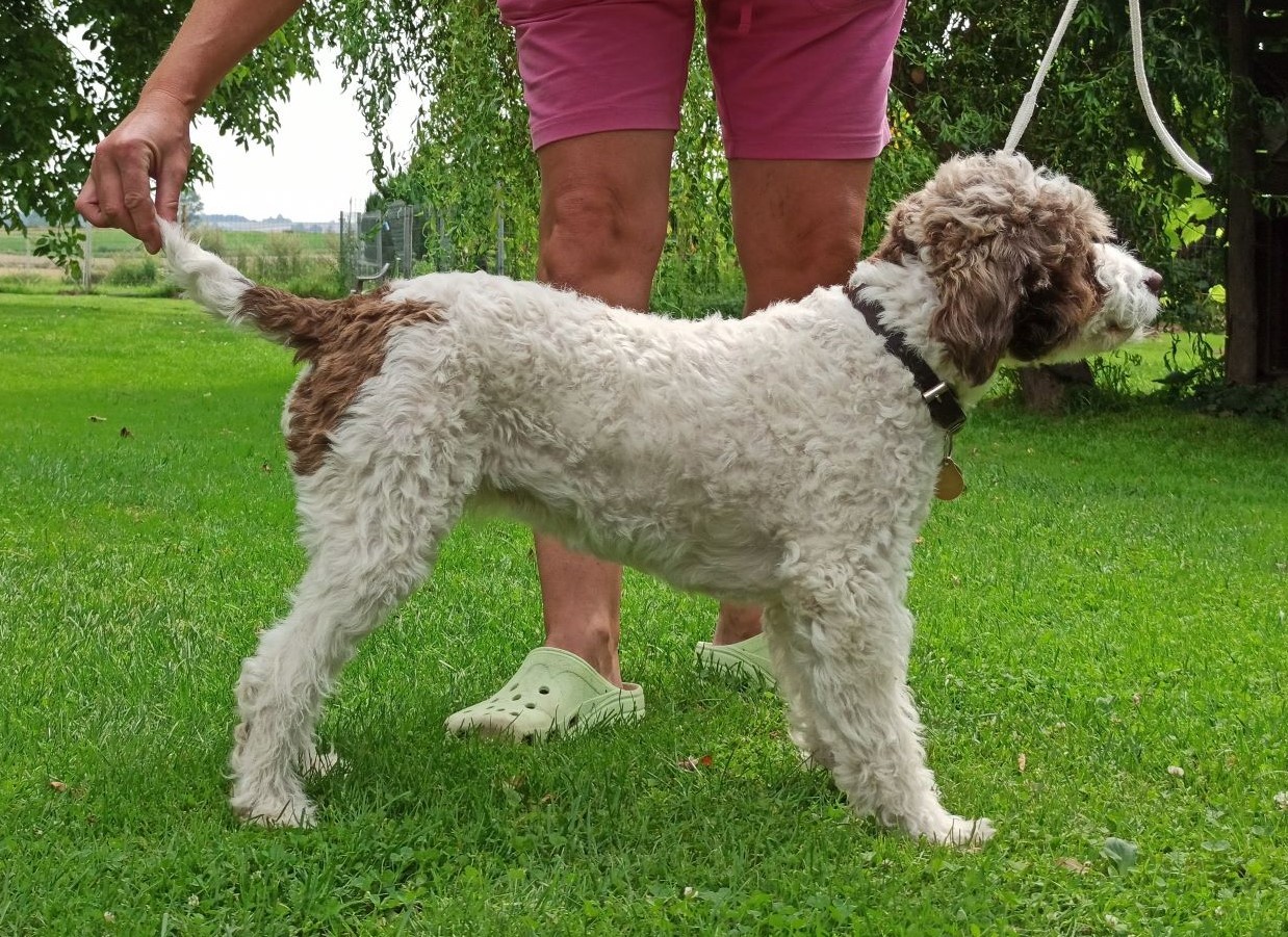 | Přezdívka: Bailee Číslo zápisu: ČLP/LGR/275 Klubové číslo: LGR/F44/2020 Datum narození: 29.08. 2018 Barva: bílo-hnědá Kohoutková výška: 41,5 cm Otec: Lord Nelson’s Willem Warg Matka: Albína Charnett Chovatel: Blanka Ulrychová (http://zlobkovickych-skal.cz/) Majitel: Mgr. Radim Miklas (www.zhrabove.cz) |